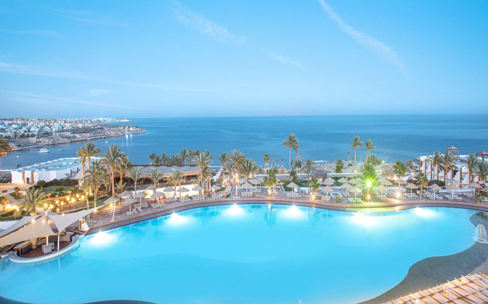 DESCRIZIONE : Il V Hotel Beach Resort 5 stelle (ex Pyramisa) è situato direttamente sulla bellissima spiaggia di Shark's Bay considerata uno dei posti migliori per le immersioni e lo snorkeling, proprio di fronte all’Isola di Tiran, a 7 km dall'aeroporto, totalmente rinnovato. L’accesso al mare è garantito da diversi punti di accesso sabbiosi con due pontili galleggianti che permettono di accedere direttamente al mare. L’hotel dispone di piscine, un grande aqua park, 3 ristoranti à la carte e 5 bar. Per raggiungere tutte le aree, il resort mette a disposizione un taf-taf che con diverse fermate permette di muoversi con facilità all’interno dell’hotel. Le aree comuni e le camere, distribuite sull’intera superfice del resort, sono state totalmente riviste ad eccezzione delle camere standard che sono però rinfrescate e risultano eleganti e moderne.